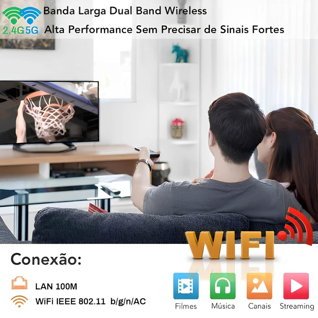 Wi-Fi: 2.4GHz + 5.8GHz (dupla banda)